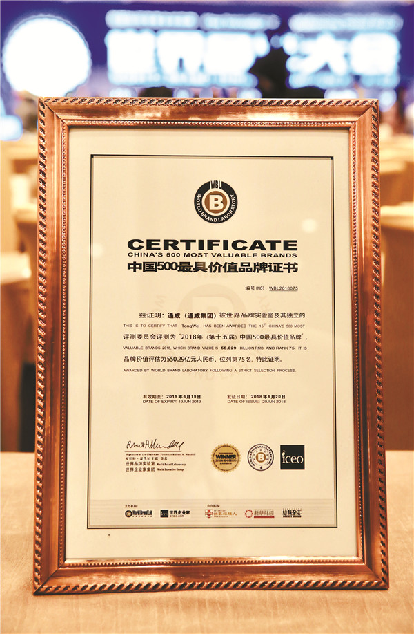 2018中國500最具價值品牌榜單在京隆重發布 通威品牌價值突破550億!