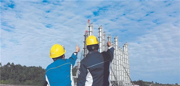 永祥新能源員工反復(fù)確認(rèn)精餾塔吊裝各項(xiàng)標(biāo)準(zhǔn)