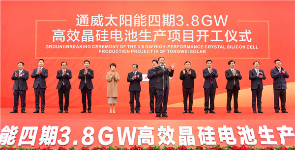 通威太陽能成都四期3.8GW高效晶硅電池項(xiàng)目、眉山10GW高效晶硅電池項(xiàng)目開工儀式