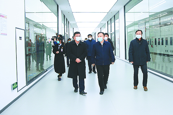 在內蒙古通威高純晶硅聽取相關情況匯報后,馬學軍副主席檢查了公司疫情防控的各項臺賬,并走進公司主控大廳,了解公司生產情況。通過實地調研和聽取匯報,高度肯定了公司采取的各項防控防疫措施和生產安全管理,對通威發展成績、光伏產業鏈打造給予高度贊賞,鼓勵公司繼續優化工藝流程,做好安全管理、發展規劃,提升核心競爭力,堅定發展信心,助力地方社會、經濟發展。