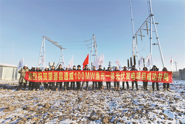 2021年12月31日,通威綏化100MW“漁光一體”項目成功并網發電,全體參建員工攻堅克難、履職盡責,最終如期完成施工建設任務,以實際行動為2021年畫上圓滿的句號,獻禮2022年。項目的順利落成,進一步鞏固了通威新能源在東北區域市場的品牌影響力。