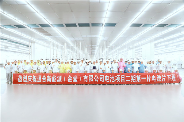 2022年3月30日,通合新能源電池項目二期第一片電池片順利下線