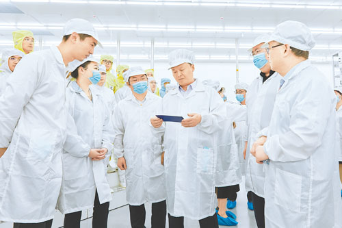 劉漢元主席對通威全球創新研發中心首片電池下線和中心正式啟用表示熱烈祝賀,并指出,科技創新是推動行業高質量發展的內在要求和重要著力點,近年來,行業發展呈現新型光伏電池加速迭代、多種技術路線競相發展態勢,新技術既要有競爭力,更要有性價比。希望全球創新研發中心專注于光伏領域的前沿技術研發與創新,以增強電池、組件等產品的核心競爭力,積極應對市場競爭與挑戰,抓住時代賦予的機遇,秉持持續創新的理念,有效推動全球能源綠色低碳轉型。