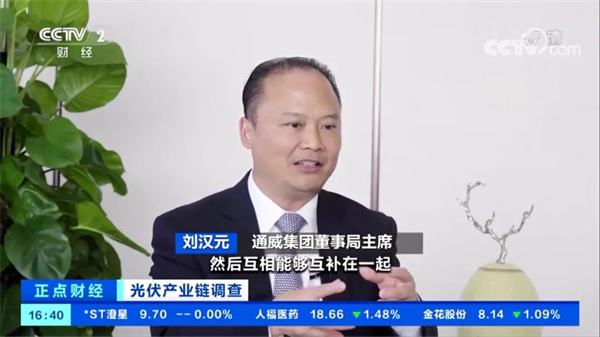 2022年全國兩會召開在即,在碳中和大背景下,以光伏為代表的可再生能源產(chǎn)業(yè)如何持續(xù)健康發(fā)展,受到各方強烈關(guān)注。2月28日,CCTV-2財經(jīng)頻道《正點財經(jīng)》播出《光伏產(chǎn)業(yè)鏈調(diào)查》專題報道。在集團品牌管理中心統(tǒng)籌下,央視記者就光伏產(chǎn)業(yè)如何降本增效、強化協(xié)同等熱點問題,采訪了十一屆全國政協(xié)常委、全國人大代表、通威集團董事局劉漢元主席。