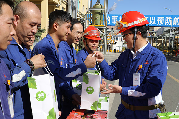 9月26日,永祥新能源開展“雙節”福利發放活動,通威股份副總裁、永祥股份總經理李斌感謝大家一直以來的敬業奉獻,并代表公司向全體干部員工送上“雙節”祝福。9月29日,內蒙古通威組織開展“節日我在崗 安全我保障”“雙節”慰問活動,內蒙古通威總經理張習松、總經理助理劉端深入生產現場,對節日期間在崗員工進行慰問。