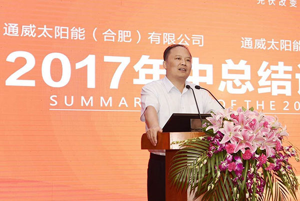 7月24日,通威太陽能(合肥、成都)有限公司2017年中工作總結暨下半年經營規劃會議在通威國際中心隆重召開。十一屆全國政協常委、通威集團董事局劉漢元主席出席會議并作重要指示。