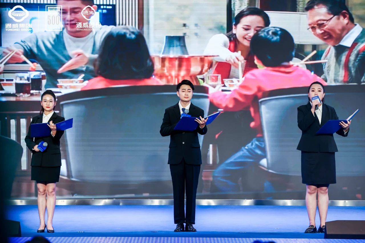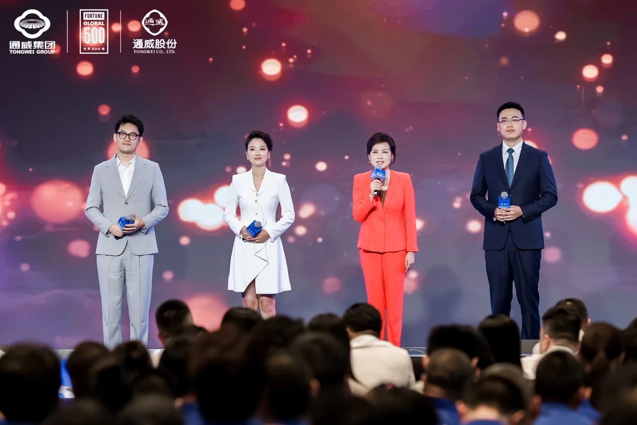 當(dāng)天,通威集團(tuán)管亞梅董事長(zhǎng),通威股份董事長(zhǎng)、CEO劉舒琪,四川廣播電視臺(tái)十佳主持人楊旭 、劉波林、田川、劉源、宋晨,成都電視臺(tái)主任播音員袁莉,成都電視臺(tái)金牌主持人趙亮、王安冉,通威股份農(nóng)牧總裁、通威農(nóng)發(fā)總經(jīng)理郭異忠,通威集團(tuán)副總裁胡榮柱,通威集團(tuán)黨委書記、副總裁、集團(tuán)企業(yè)文化建設(shè)專項(xiàng)工作小組執(zhí)行組長(zhǎng)黃其剛,通威股份副總裁、永祥股份總經(jīng)理李斌,通威股份光伏首席技術(shù)官邢國(guó)強(qiáng),通威集團(tuán)財(cái)務(wù)總監(jiān)肖吉華,通威股份總裁助理、通威太陽(yáng)能科技總經(jīng)理蕭圣義,通威集團(tuán)黨委組織委員、通威股份人力資源總監(jiān)易繼成,集團(tuán)企業(yè)文化建設(shè)專項(xiàng)工作小組執(zhí)行副組長(zhǎng)、通威股份行政總監(jiān)馮暢,通威股份金融總監(jiān)邱艾松,通威太陽(yáng)能總經(jīng)理周華,通威食品總經(jīng)理陳波等領(lǐng)導(dǎo),以及璉升光伏等川聯(lián)光伏產(chǎn)業(yè)商會(huì)部分會(huì)員企業(yè)嘉賓出席大會(huì)。通威集團(tuán)管理總部、通威股份管理總部、通威農(nóng)發(fā)、永祥股份、通威太陽(yáng)能、通威太陽(yáng)能科技、通威新能源、通威食品、通威地產(chǎn)、通威微電子、好主人寵物食品、通宇物業(yè)、通威傳媒、通威商管等600余人現(xiàn)場(chǎng)參會(huì),全球通威人通過(guò)線上直播觀看大會(huì)盛況。