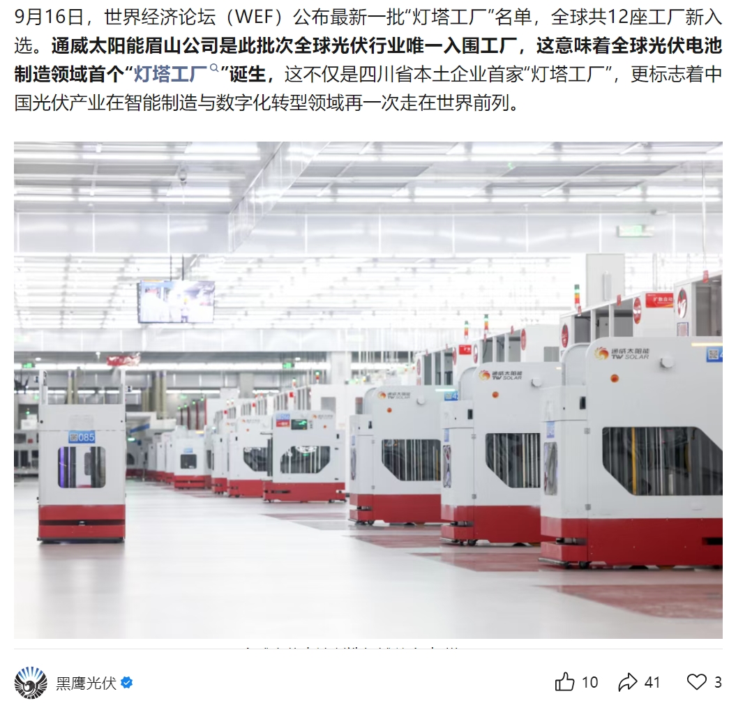 通威太陽能榮膺全球光伏電池制造領域首個“燈塔工廠” 引媒體齊聚焦