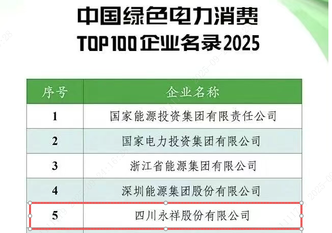中國綠電消費百強出爐!永祥股份位列國內(nèi)民營企業(yè)首位