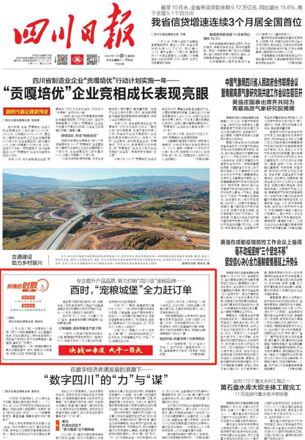19時,天色已暗,生產(chǎn)線還在轟轟作響,“寵糧城堡”燈火通明。楊洪海和許多同事還在加班,為兩天后承辦的一場全國性寵物行業(yè)高質(zhì)量發(fā)展論壇做準備?!敖衲晡覀兊恼w銷售額同比增長50%以上,產(chǎn)量也相應增長,超越行業(yè)平均增速?!睏詈楹Uf,為在快速增長的寵物食品市場蛋糕中搶得更多份額,下一步公司將在研發(fā)、生產(chǎn)、銷售各環(huán)節(jié)持續(xù)發(fā)力,專注提升產(chǎn)品品質(zhì),努力打響“四川造”寵糧品牌。
