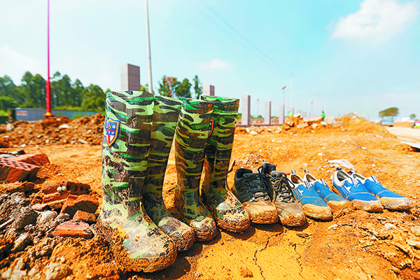11點50分,走了近兩個小時候后,巡查結(jié)束,此時氣溫已接近40度,王剛的后背早已濕透,汗如雨下。像這樣的巡查,王剛每天都要進(jìn)行至少兩三遍。“早就習(xí)慣了!一個項目干下來,鞋都要穿壞四五雙。”王剛笑著說。