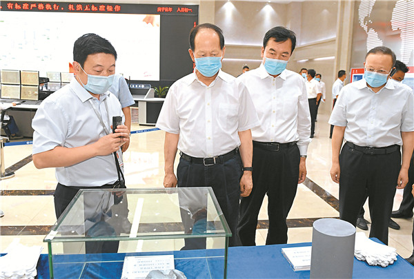 7月21日,內(nèi)蒙古自治區(qū)黨委書記、人大常委會主任石泰峰蒞臨內(nèi)蒙古通威調(diào)研,自治區(qū)黨委常委、秘書長張韶春,自治區(qū)人大常委會副主任、包頭市委書記張?jiān)褐遥灾螀^(qū)黨委副秘書長、政策研究室主任孟慶維,自治區(qū)發(fā)改委主任龔明珠,自治區(qū)工信廳廳長李仲開陪同調(diào)研,通威股份董事、永祥股份董事長兼總經(jīng)理段雍,永祥股份副總經(jīng)理兼內(nèi)蒙古通威總經(jīng)理袁中華熱情接待。