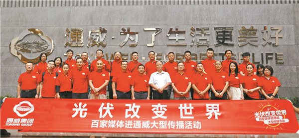 7月22日,“百家媒體進(jìn)通威”傳播活動再次啟程。來自新華社、中國新聞社、人民網(wǎng)、中央電視臺、光明日報、經(jīng)濟(jì)日報、中華工商時報、中國青年報、四川日報、四川電視臺、成都日報、財聯(lián)社、黑鷹光伏、每日經(jīng)濟(jì)新聞、第一財經(jīng)、鳳凰網(wǎng)等近30家央級權(quán)威媒體、主流媒體、行業(yè)媒體、財經(jīng)媒體記者等組成的媒體團(tuán)先后走進(jìn)通威太陽能眉山公司、永祥新能源,實(shí)地了解了通威新能源產(chǎn)業(yè)發(fā)展成果,以及中國光伏企業(yè)全球領(lǐng)先的發(fā)展實(shí)力。本次媒體活動由集團(tuán)品牌管理中心組織策劃,十一屆全國政協(xié)常委、全國人大代表、通威集團(tuán)董事局劉漢元主席出席活動,通威集團(tuán)副總裁黃其剛?cè)膛阃⒅鞒肿剷ㄍ煞荻隆⒂老楣煞荻麻L兼總經(jīng)理段雍陪同接待。