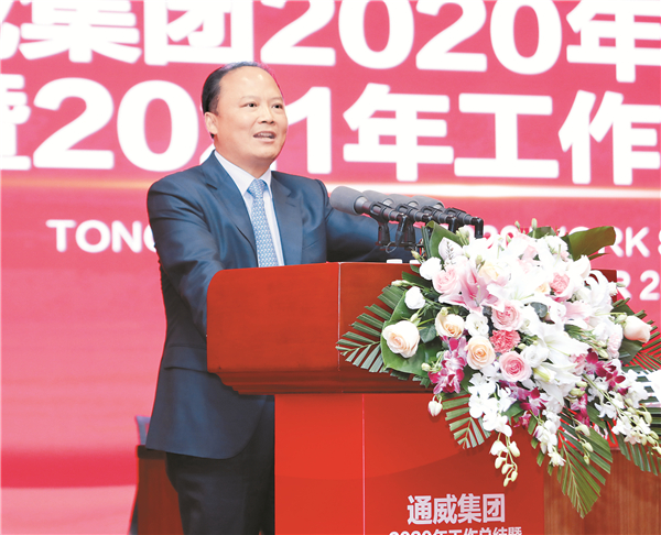 劉漢元主席總結講話中首先對全體通威人在2020年創造的優秀成績表示祝賀,并表示,2020年,新冠肺炎疫情席卷全球,全球主要經濟體出現負增長,面對嚴峻的市場挑戰,在全體通威人的共同努力下,通威仍然保持了良好的發展態勢:永祥股份登頂全球高純晶硅最高產銷量,行業龍頭地位進一步鞏固;通威太陽能繼續保持全球晶硅電池“六個最”,盈利走在行業前列,競爭優勢進一步擴大;終端板塊“543”目標基本實現;農牧板塊標準化、質量方針進一步落地。