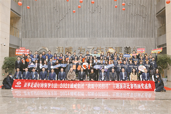 11月30日,以“表率是最好的領導方法”為主題的2021通威集團“我眼中的榜樣”主題演講比賽暨頒獎盛典在通威國際中心隆重舉行。四川省廣播電視學會播音主持專委會會長、成都市語言藝術協會藝術顧問李蓉,成都電視臺《東周社》主講人、中國播音主持界最高榮譽“電視主持人金話筒獎”獲得者、成都市全民閱讀推廣形象大使周東,四川電視臺節目主持人、成都市語言藝術協會副秘書長海光,十一屆全國政協常委、全國人大代表、通威集團董事局劉漢元主席,通威集團禚玉嬌總裁,通威股份謝毅董事長、郭異忠總裁,以及集團、股份總裁辦相關領導出席活動,集團、股份管理總部,農牧板塊、新能源板塊、相關多元板塊各分、子公司管理團隊及員工代表參會。四川電視臺主持人楊林擔任盛典主持。