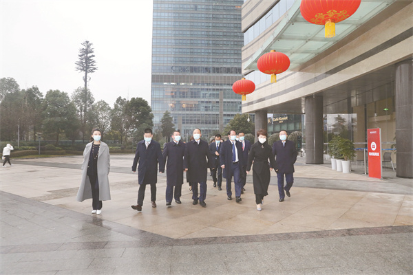“新年好!”每到一處,劉主席都向大家揮手致以新春的問候,并仔細查看員工辦公環境,與大家親切交流,關心和了解員工上班第一天的工作情況。在聽取各部門負責人關于當前重點工作和重點項目推進情況的匯報后,主席對大家過去一年取得的優異成績表示祝賀,并鼓勵大家在新的一年里再創佳績。