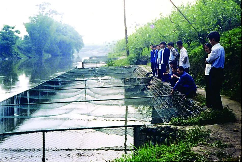 1984年3月,春暖花開,魚兒生長的季節到了。劉漢元主席把第一批185公斤約3800尾鯉魚苗投放到網箱中,開始了渠道金屬網箱式流水養魚試驗。