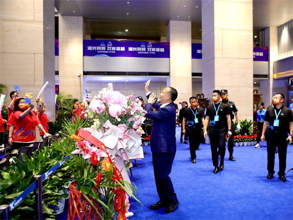 劉漢元主席向大會(huì)分會(huì)場(chǎng)員工揮手致意