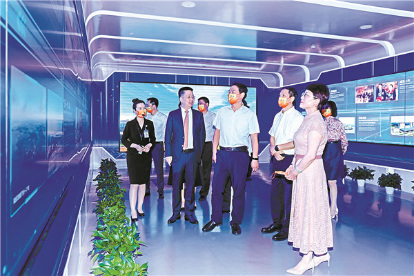 通威集團(tuán)禚玉嬌總裁,通威股份董事長(zhǎng)、CEO謝毅陪同趙俊民常委參觀集團(tuán)體驗(yàn)中心