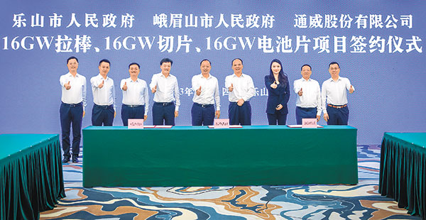 馬波書記表示,當(dāng)前樂山正深入學(xué)習(xí)貫徹黨的二十大精神和習(xí)近平總書記來川視察重要指示精神,圍繞省委“四化同步、城鄉(xiāng)融合、五區(qū)共興”發(fā)展戰(zhàn)略和全市“產(chǎn)業(yè)強(qiáng)市、旅游興市”實(shí)踐定位,堅(jiān)定實(shí)施晶硅光伏產(chǎn)業(yè)“頭號(hào)工程”,加快建設(shè)中國綠色硅谷,努力為全國、全省貢獻(xiàn)一個(gè)世界級(jí)先進(jìn)制造業(yè)產(chǎn)業(yè)集群。通威是中國光伏的閃亮名片,樂山與通威因晶硅光伏產(chǎn)業(yè)結(jié)緣,合作基礎(chǔ)扎實(shí)、空間廣闊、前景光明。希望雙方以此次簽約為新起點(diǎn),政企攜手,把晶硅光伏產(chǎn)業(yè)打造成世界級(jí)的一流“地標(biāo)”產(chǎn)業(yè),為全國、全省發(fā)展大局作出應(yīng)有貢獻(xiàn)。