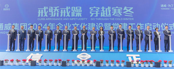 3月22日,通威集團(tuán)2024年企業(yè)文化建設(shè)暨黨建工作啟動(dòng)儀式在永祥股份樂(lè)山基地隆重舉行。啟動(dòng)儀式以“戒驕戒躁 穿越寒冬”為主題,總結(jié)2023年企業(yè)文化建設(shè)成果,部署2024年企業(yè)文化建設(shè)工作。2024年面對(duì)新形勢(shì)、新挑戰(zhàn),通威始終堅(jiān)持將優(yōu)秀文化與經(jīng)營(yíng)管理相結(jié)合,號(hào)召全體通威人以更強(qiáng)的使命感和責(zé)任感,用心、用智慧、用只爭(zhēng)朝夕的精神工作,用強(qiáng)大的通威文化去創(chuàng)造更大更新的輝煌。