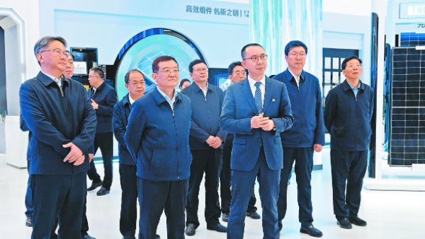 徐樂江書記一行參觀了通威太陽能科技鹽城基地,聽取產能布局、研發(fā)生產、市場銷售等情況介紹,對鹽城基地搶占光伏行業(yè)技術高地、拓展產品應用市場等方面取得的成績給予肯定,并鼓勵公司要瞄準產業(yè)方向,利用資源優(yōu)勢搶占新賽道、拓展新思路,不斷推進技術創(chuàng)新,在核心競爭力上做出更大突破,為光伏產業(yè)發(fā)展貢獻力量。