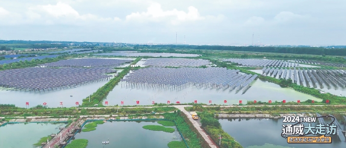 產業是鄉村振興的“源頭活水”,產業興則農村興、產業旺則農村旺。在“漁光一體”發展過程中,通威新能源始終秉持“致富一方經濟,造福一方百姓”的理念,不斷探索三產融合發展模式:一產方面,發揮龍頭企業融資、品牌賦能、資源整合等特色優勢,搭建平臺,與養殖能手深度合作,最大限度挖掘“漁光一體”發展潛力,與養殖戶一起成長,共享行業發展機遇;二產方面,光伏發電不斷產出綠色清潔能源,為當地綠色發展注入強勁動力;三產方面,以“漁光一體”基地為中心,發展研學游等,輻射帶動周邊鄉村旅游。通過一產、二產、三產融合發展,在“漁光一體”基地,有效解決農業農村農民問題,為推進鄉村全面振興提供了“通威方案”。