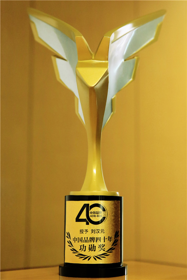 劉漢元主席榮膺“中國品牌40年40人”證書及獎杯