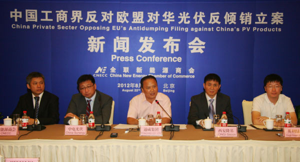 劉漢元主席出席中國工商界反對歐洲對華光伏反傾銷立案新聞發(fā)布會