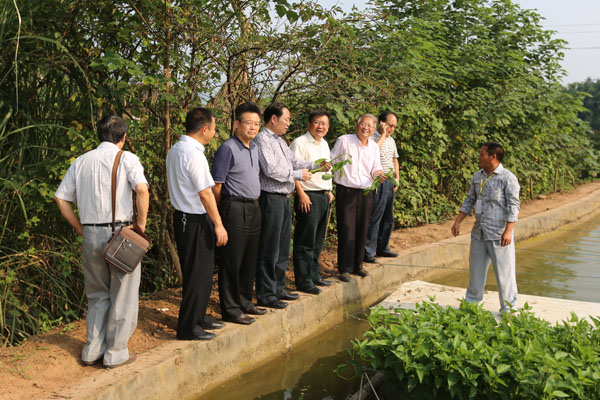 9月13日,中共四川省委農村工作委員會副主任楊秀彬,四川省水產局局長卿足平一行到位于雙流、新津等地的通威養殖基地深入調研環保漁業發展工作,通威股份嚴虎總裁,副總裁、技術總監兼市場營銷總監王尚文,國務院特殊津貼專家吳宗文熱情接待并座談。