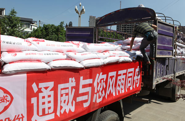 5月20日,通威再襄義舉。受通威集團(tuán)董事局劉漢元主席委托,通威股份副總裁陳平福攜著近兩萬通威人對蘆山地震災(zāi)區(qū)的深厚情誼,積極響應(yīng)中共四川省委農(nóng)工委的號召,向蘆山縣政府捐贈價值人民幣近200萬元的450噸通威水產(chǎn)飼料、豬飼料,支援災(zāi)區(qū)人民災(zāi)后重建。中共四川省委常委、省委農(nóng)工委主任李昌平,四川省人民政府副省長曲木史哈等領(lǐng)導(dǎo)出席捐贈儀式,中共蘆山縣委副書記、蘆山縣人民政府縣長王華代表蘆山縣政府接受捐贈。