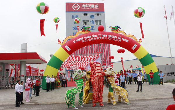 理念,歷時10個月,圓滿完成任務(wù),并于2012年6月3日迎來了生產(chǎn)線的順利投產(chǎn)。與此同時,全體海陽通威人堅持“誠、信、正、一”的文化理念,堅持“速度、效率與發(fā)展”的經(jīng)營方針,先后加速完成了團隊組建、市場調(diào)研、產(chǎn)品定位等基礎(chǔ)性工作。產(chǎn)品投放市場后,堅持“為客戶創(chuàng)造利益最大化”的營銷理念,以養(yǎng)殖示范為基礎(chǔ),大力推廣通威營銷模式和養(yǎng)殖模式,于2012年8月25日完成全年銷售任務(wù),成績喜人。希望全體海陽通威人以開業(yè)慶典為契機,遵守越南法規(guī),確保公司合法經(jīng)營、誠信經(jīng)營、有效經(jīng)營、良性發(fā)展,為越南海陽省的經(jīng)濟發(fā)展不斷做出更大的貢獻。