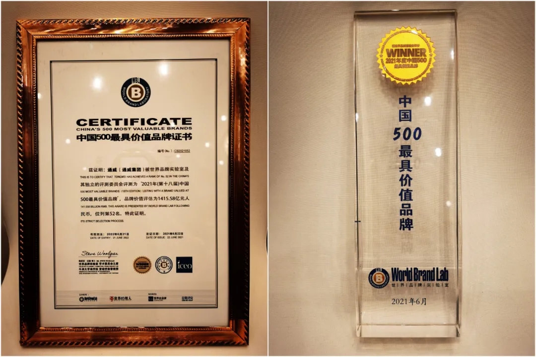 2021年成為最新《中國500最具價值品牌》大贏家的通威,背后代表著通威品牌全球影響力和話語權不斷邁上新臺階。