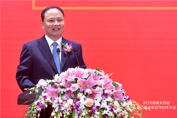 通威太陽能董事長謝毅在致辭中首先對(duì)蒞臨現(xiàn)場的領(lǐng)導(dǎo)嘉賓致以衷心的感謝,并表示,通威太陽能從成立至今,在各位光伏同行、合作伙伴的鼎力支持下,創(chuàng)造了一個(gè)又一個(gè)的行業(yè)記錄。公司現(xiàn)擁有13GW電池產(chǎn)能,是全球最大的晶硅電池企業(yè),電池出貨連續(xù)2年全球第1。在劉漢元主席的帶領(lǐng)下,通威成立之初,就把與供應(yīng)商、與客戶的合作共贏放到第一位。劉主席早在二十多年前就提出:“如果大家彼此信任,成為真正手牽手、背靠背的好朋友、好伙伴、好兄弟,那通威一定是五分五厘為對(duì)方想、四分五厘為自己想,一定不是把每一個(gè)銅板全部賺進(jìn)自己的腰包?!辈徽撌俏磥砭薮蟮墓夥袌觯€是今天通威太陽能所取得的成績,都離不開政府領(lǐng)導(dǎo)的大力支持,離不開今天在座的各位光伏同行和合作伙伴的鼎力相助。2019年末,通威電池產(chǎn)能將超過20GW,2020年末電池產(chǎn)能規(guī)模將超過30GW,但通威永遠(yuǎn)“店大不欺客、客大不欺店”。通威太陽能5年來的風(fēng)清氣正、正大光明成為光伏行業(yè)的“通威現(xiàn)象”,未來的合作中,通威和每一位通威人將永遠(yuǎn)堅(jiān)守這份信念,與大家攜手共進(jìn),開創(chuàng)更加美好的未來。