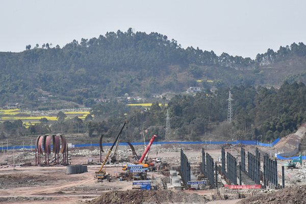陽光穿過群山,透過薄霧撒在數(shù)百畝的園區(qū)工地上,多臺塔吊的搖臂正來回忙碌,貨車來來回回,一排排建筑已經(jīng)拔地而起初具雛形……3月23日上午,位于五通橋區(qū)的四川永祥5萬噸高純晶硅及配套新能源項(xiàng)目(以下簡稱永祥“5+2”)一期建設(shè)現(xiàn)場一派蓬勃忙碌、規(guī)范有序的景象。